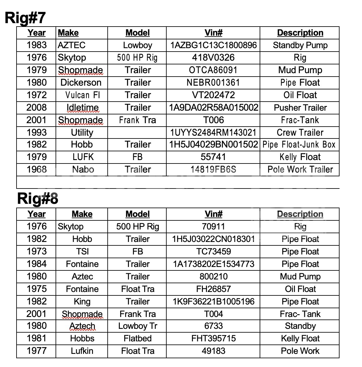 Complete Liquidation: Rigs, Trucks, Trailers and Misc Equipment for Sale