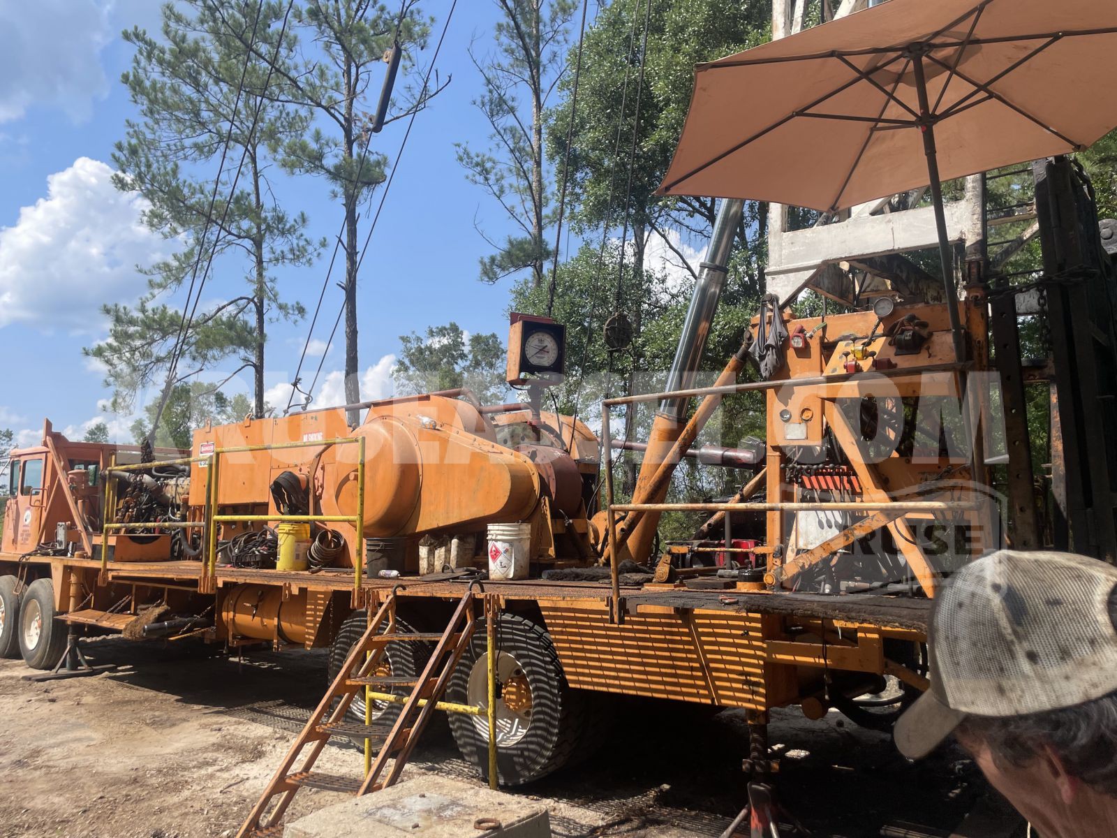 1981 Cooper 42 x 12 Single Drum Well Servicing Unit-Rebuilt drawworks 2003 G & M Kilgore Texas. S/N-2177, Swab Drum, LEBUS Grooved f/1" Tubing Line, p/b CAT 3406e Diesel Engine, S/N-8VF092790 w/ Electric Starter, Radiator, Gauges, Allison CLBT-5860 Raised 7 Scoped, Single 3- Stage Raising Ram, Double Tubing & Triple Rod Boards, Mounted on Cooper LTO-350D0 4-Axle Back-In Carrier with Single Man Cab, (4) Hydraulic Leveling Jacks, Hydraulic Utility Winch, Bendix TuFlo 1000 Air Compressor. Base Section repaired 2015 for Cooper Derrick.