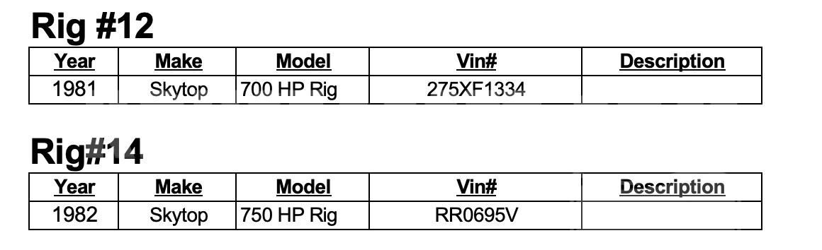 Complete Liquidation: Rigs, Trucks, Trailers and Misc Equipment for Sale
