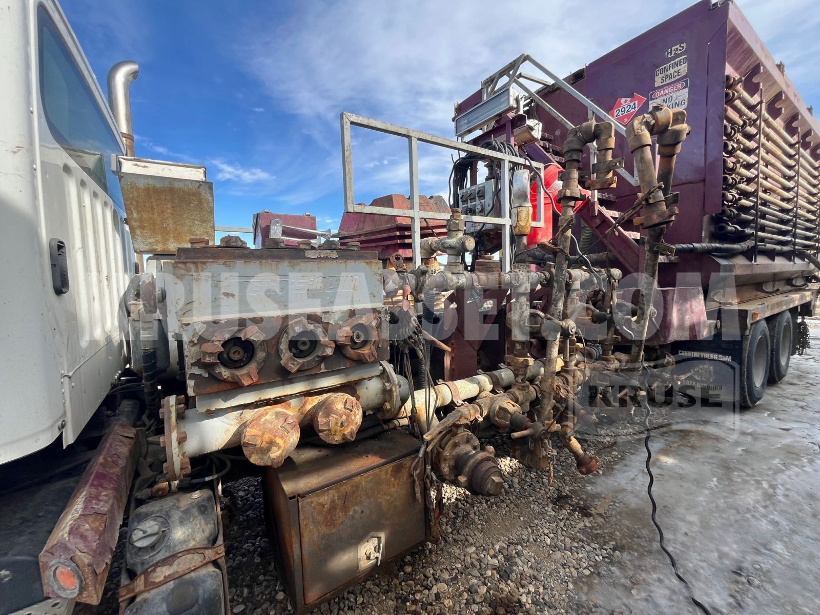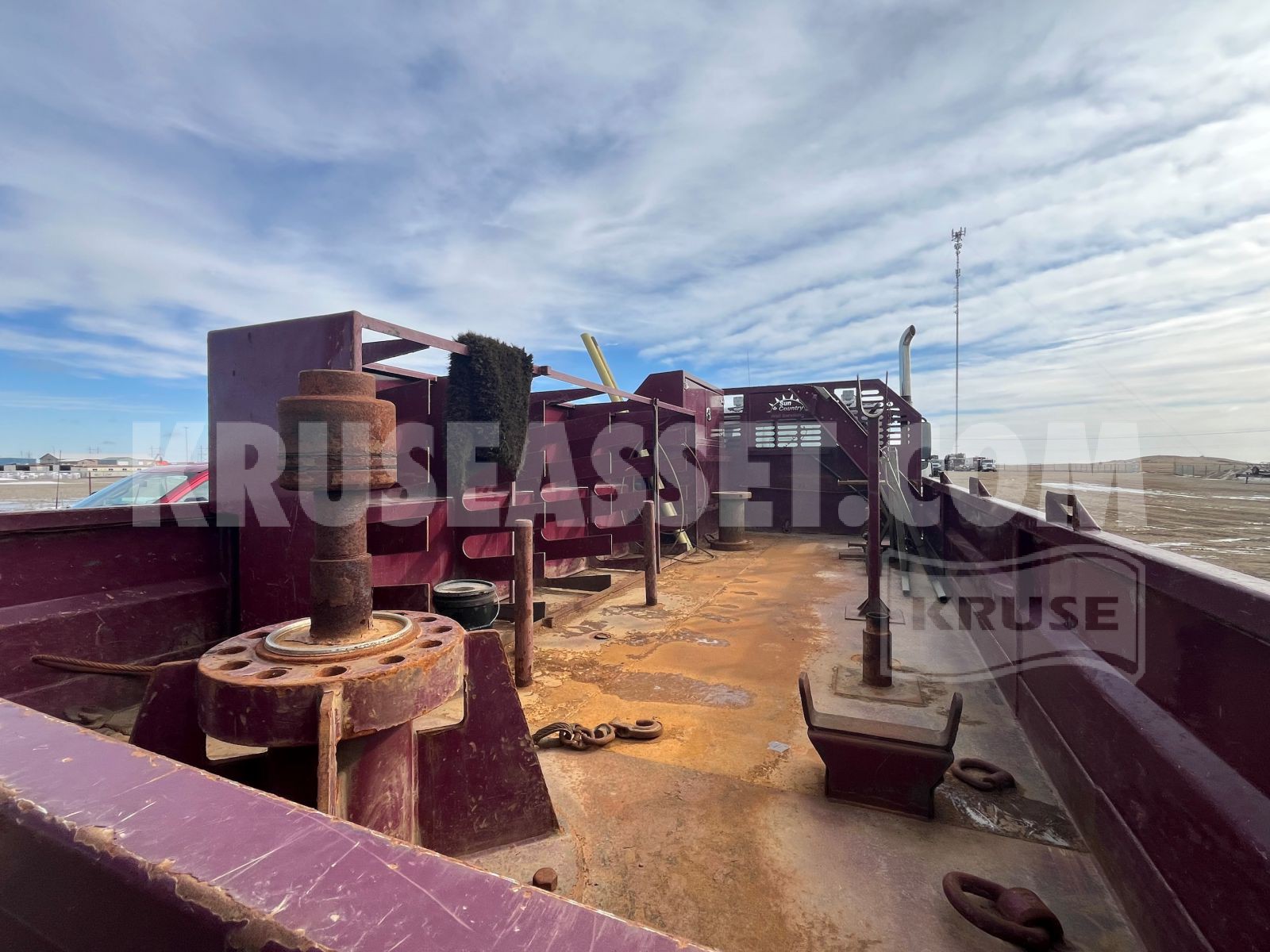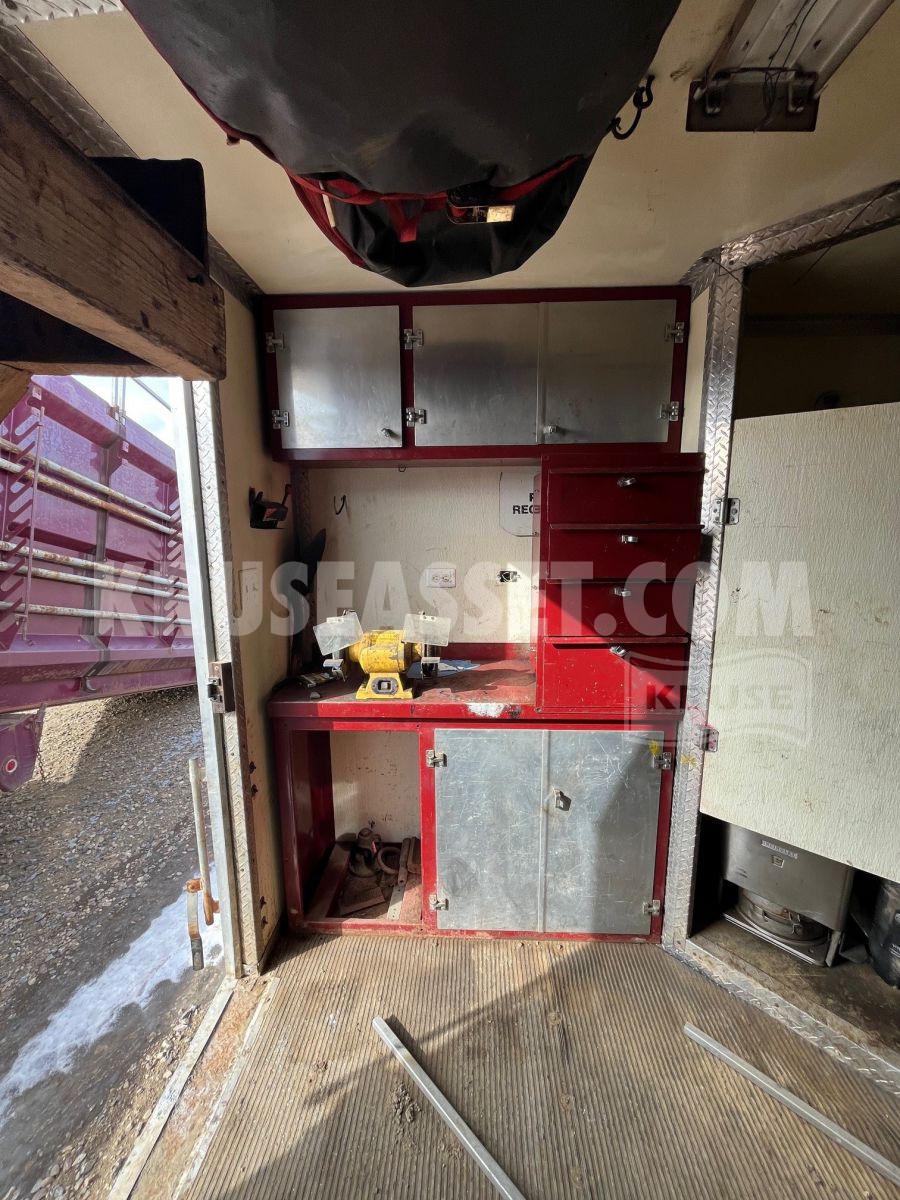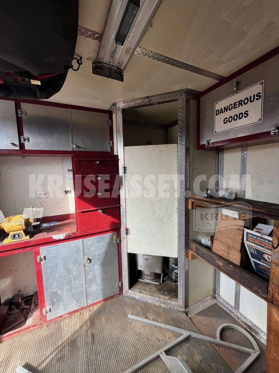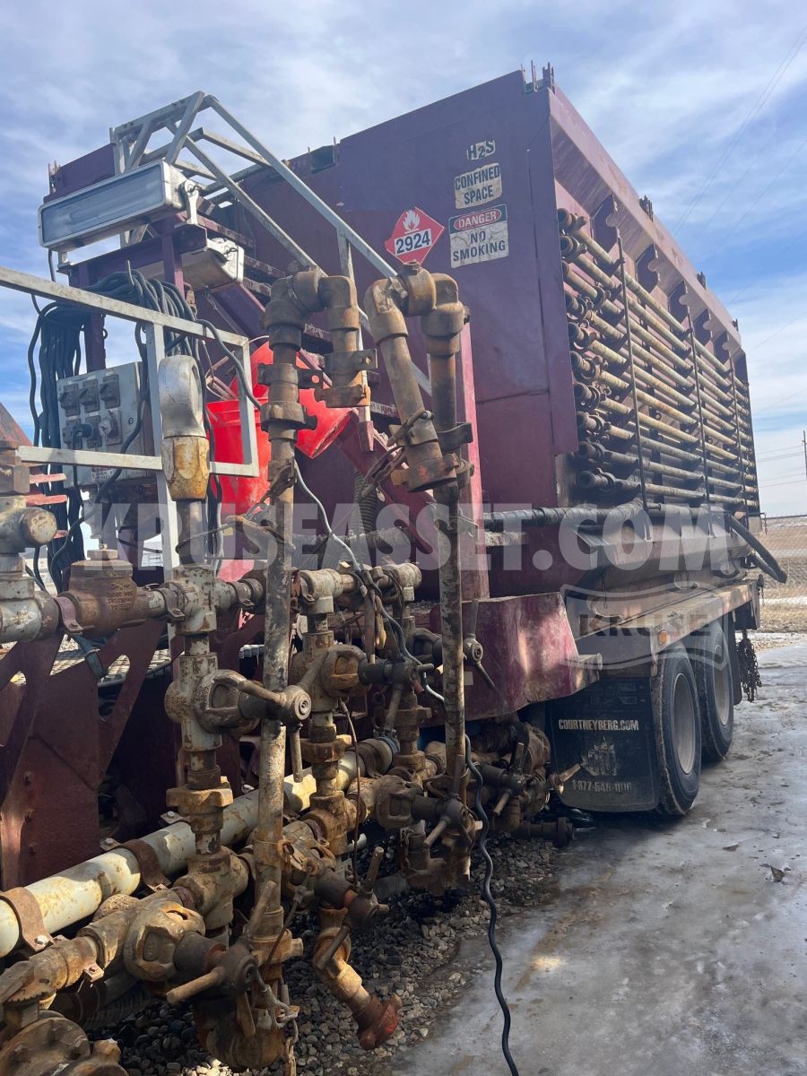 Equipped with tool cabinets and custom deck for hauling tools, tongs and BOPs.