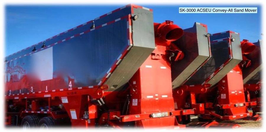 Convey-All Sand Mover model SK-3000-ACSEU is a trailer-mounted unit designed to store and deliver proppant during hydraulic fracturing treatments.