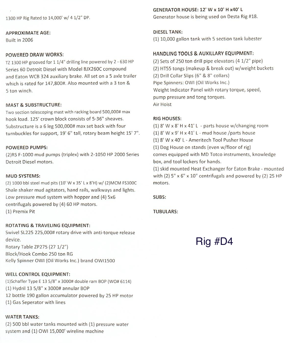 (5) 2006 TZ 1300HP Trailer Mtd Drilling Rigs for Sale